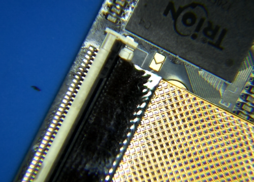 Locate the IC and mount the flex as shown. Ignore the "solder side up" this is incorrect. The flex will mount the same way in all models and variants. PAY extremely close attention to the alignment. The pads can be very "long" and its easy to be off 1 pin.