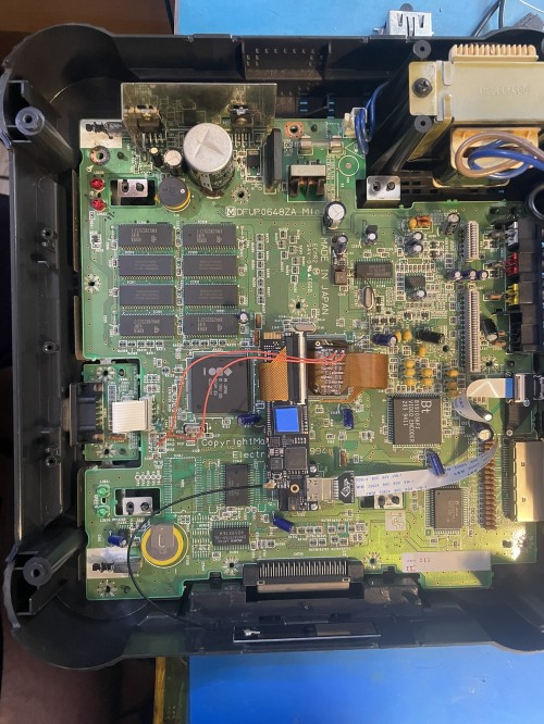 This guide will not go over the disassembly of the 3DO. Guides are available online. Once the mainboard is free remove the RF port. If your mainboard does not have an RF port then you need to desolder the two grounds where the HDMI plastic mount sits.