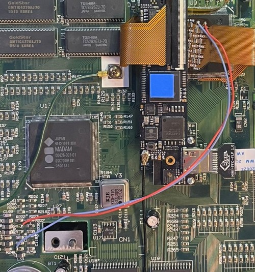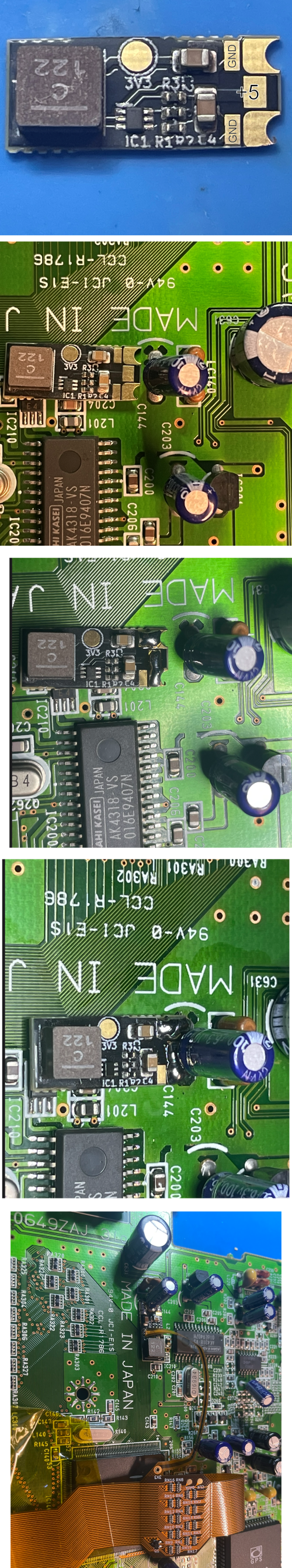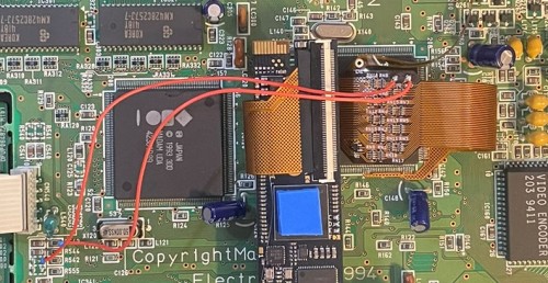 Peel back the red tape and then plug in the FFC cable. Mount the gem into place. The mounting tape needs to go on top of the ARM chip. (This is relaitvely the same in all models.) Make sure the HDMI output does not come into contact with the CD-ROM mount (FZ1)