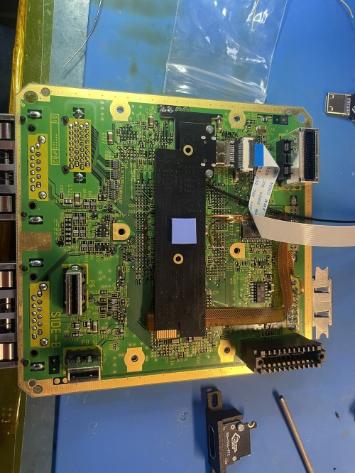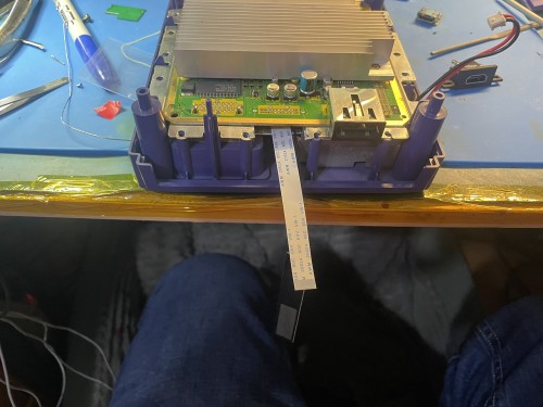 Put the thermal pad on the back of the GEM as shown. Insert the FFC connector and route to the connector you removed. If doing the GCDual mount, go out the side like existing gcdual.
