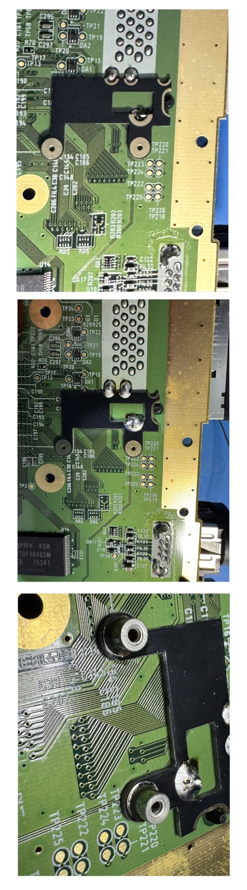 This guide will not go over the disassembly of the Wii. Guides are available online. Please make sure the heatsink is attached to the wii when doing any power on testing. M2 screws and Nut can be use a temp solution to hold the heaksink in place without the bottom plastic. Allowing you to boot the console and still have access to the back side of the motherboard. For the Wii to display an image the Wifi/BT Dongle must be attached (Sometimes it sticks to the top metal shield during dissaembly).