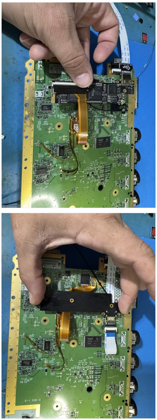 Flip the GEM over and install the main FFC connector. Attach the GEM loosly as show with the white FFC cable going underneight. Make sure its not snagged by any components.